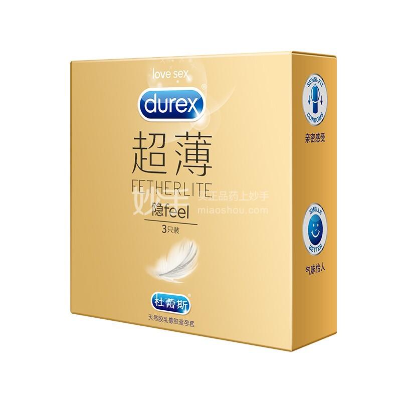 【Durex/杜蕾斯】 天然胶乳橡胶避孕套(超薄装) 3只 52mm粉红色